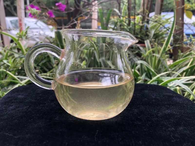 汤色呈黄绿色,透亮度稍有混浊,这是由于部分绒毛脱落悬浮在茶汤中所造成的,属正常现象,压饼存放1-2年后,就会变得很清亮了。无论茶汤香还是挂杯香都比较浓郁,香型呈蜜香中带有明显的花香,同时还带有高杆茶特有的那种野性(俗称骚香味)。