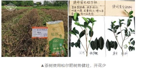 3、合理施肥:施用氮磷钾配比科学合理的复合肥,减少磷元素的施用,选择合适的施肥时期和技术。推荐“一基三追”施肥技术模式,2月份、4-5月份、8月份茶树追肥分别使用松尔肥50斤/亩,10-11月份茶树基肥使用松尔肥75-100斤/亩。实践表明,茶树使用松尔肥,可减少茶叶开花结籽,满足茶叶良好生长发育营养需求,提高茶叶产量和品质。