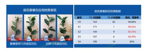 5、药剂调控:茶季结束后,在茶树开花初期(花开10%-30%)可使用国光疏花套餐1套兑水30斤进行全株喷施,重点喷花蕾,促进茶花和花蕾提前脱落,减少营养的无用消耗,有利于翌年茶树萌芽。