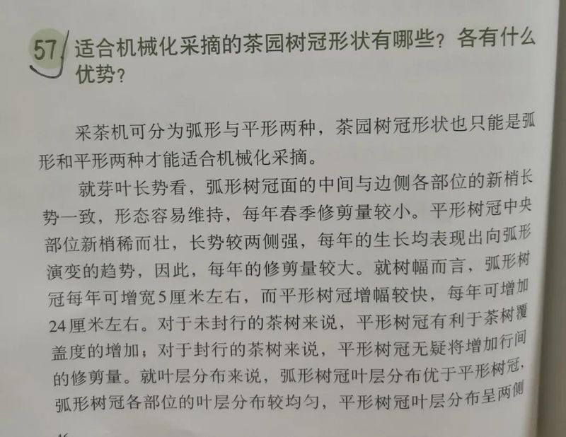 3.适合机械化采摘的茶园树冠形状有哪些?各有什么优势?
