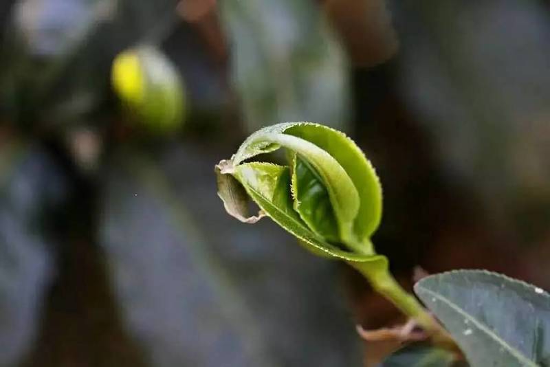 芽尖从紧紧包裹着的鳞片里面探出了头,这片曾经保护茶芽不受风吹雨打的小鳞片将在茶芽成熟之后脱落。
