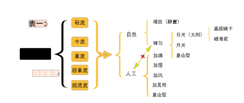 萎凋根据速度及程度来分,可分为“轻度萎凋”“中度萎凋”“重度萎凋”及“超重度萎凋”与“超速度萎凋”,一般为前三种萎凋。我在制作云南白茶时,发现它的萎凋远远重于其他茶,正因为有了这超重度萎凋,才有了黑白分明的月光白,才有甘甜醇和果香浓郁的云南白茶,在云南实际生产中广泛存在着这种超重度萎凋的应用。