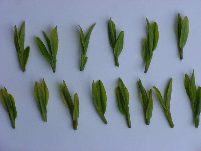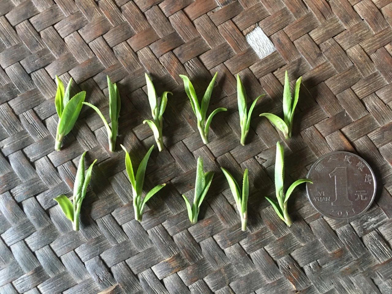 明前采摘基本是一芽一叶、一芽一叶初展,长度在2厘米左右(这两年常用1元硬币参照);