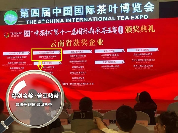 历时2个多月征集、审评的第十一届国际鼎承茶王赛春季赛5月22日圆满落幕。由勐海普盛茶业有限公司推送的普盛号“聊适”熟茶于赛事中一路过关斩将,荣获普洱茶熟茶组唯一“特别金奖”。