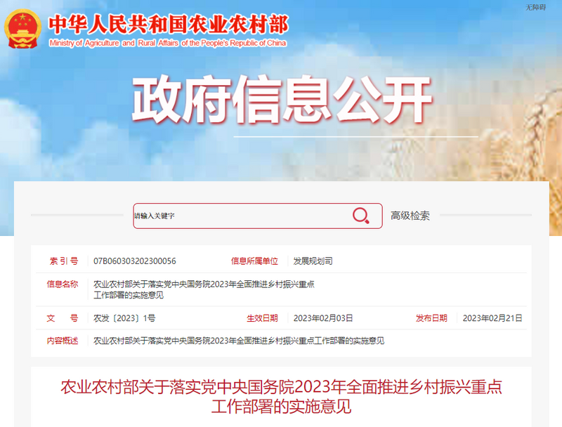 2月21日,农业农村部发布了关于落实党中央国务院2023年全面推进乡村振兴重点工作部署的实施意见,指出促进果菜茶多样化发展,推进老旧果园茶园改造。深入推进农业生产和农产品“三品一标”,扩大绿色、有机、地理标志和名特优新产品规模。