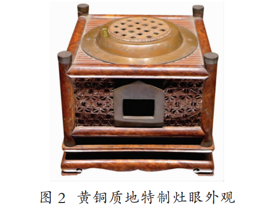 炉具:目前技术实验操作所用的竹炉器具,外形尺寸依据乾隆竹炉的大小,进行了1∶1.5的仿制,其结构增加了耐火材料的空间,整体材质款式均效仿乾隆竹炉,其炉膛和铜件分别于宜兴和南京厂家进行定制,基本功能均能达标实现,仍有部分铸铜配件(炉座、红铜护圈)还有待工艺提升。