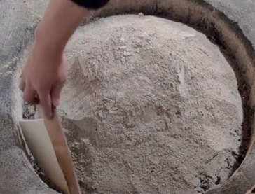 ▲ 当今的灶眼“盖灰技法”操作
