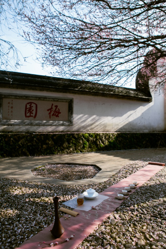 山水之景配以亭台楼榭、花草树木,尽得自然之盎趣。唐代诗人品茗自然不会错过园林这个造自然之法、尽人工之妙的好景观。陆羽曾在杼山妙喜寺建三癸亭,成为人文品茗聚会之所。