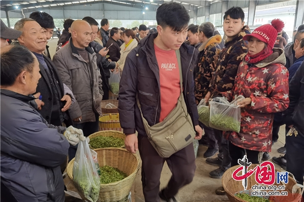 名山区周边的成都蒲江县、眉山市、宜宾市等地客商们也纷至踏来。2月14日,河北茶商王广力也从老家赶了过来。“1994年,我第一次来到雅安收购茶叶。如今每年都来,已经快30年了!”他说。