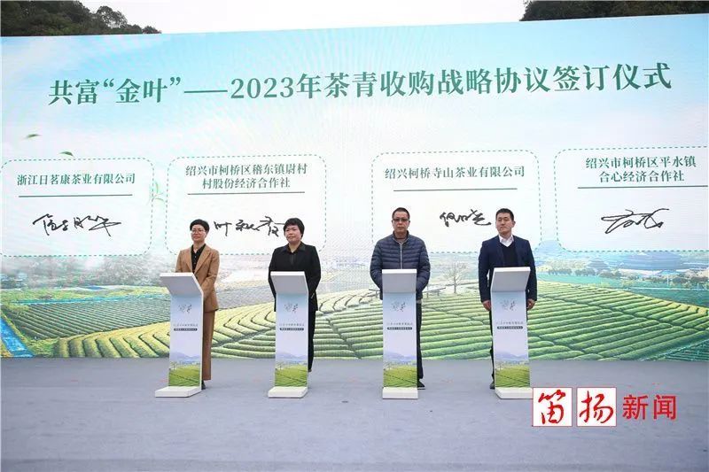 会稽春光好,新茶正待时。3月16日上午,2023年“平水日铸”开茶仪式暨新茶上市新闻发布会在柯桥区稽东镇日茗康茶业举行,借一声“开茶”唤醒稽山绿意,践行“三茶”统筹,助力乡村共富。
