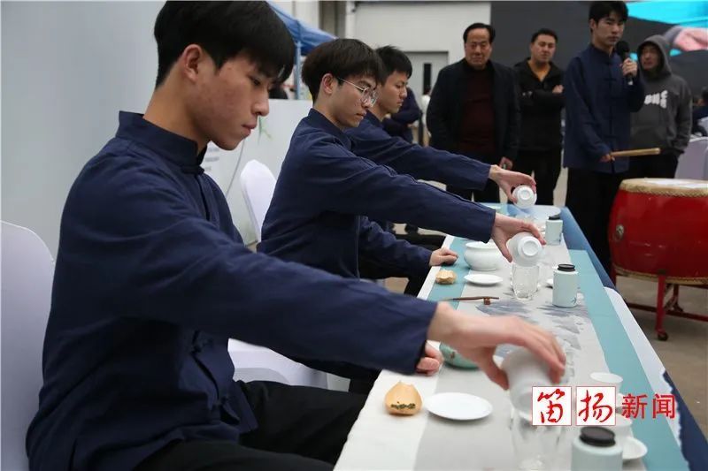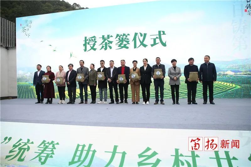 柯桥区领导张伟江、沈琴梅、王茂荣,柯桥区茶文化研究会常务副会长祝静芝等出席开茶仪式,并为茶企代表授茶篓。