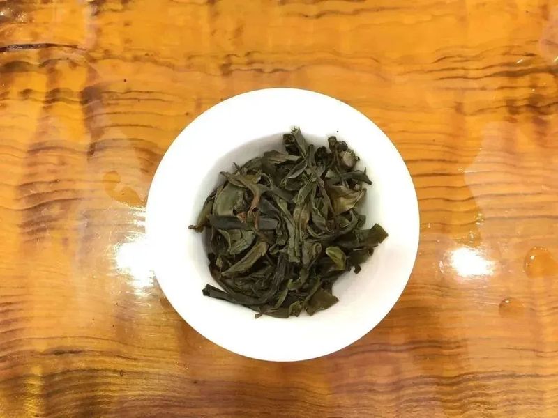 五泡茶喝完,先看叶底。叶底看上去一致性不是特别好,而且泡了五泡以后,它还发青,青色还比较明显。叶底没有韧性,上手随便搓一搓就碎了,而且还粘手。