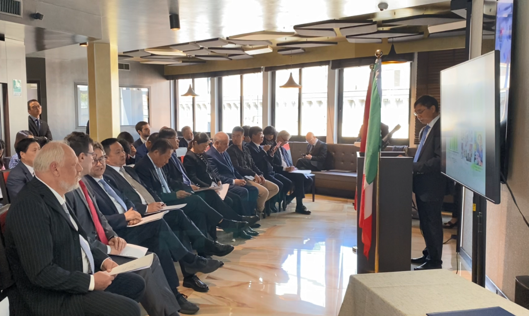 安溪县委常委、县茶业管理委员会常务副主任肖印章在座谈会上致辞。肖印章表示,安溪县是千年古县、著名侨乡,是中国茶都、世界藤铁工艺之都,中意同属文明古国,古老的丝绸之路将两国紧密相连,今天的中意茶酒文化推广战略合作等一系列活动,让中意文化再次交融,让中意友谊更加多彩。