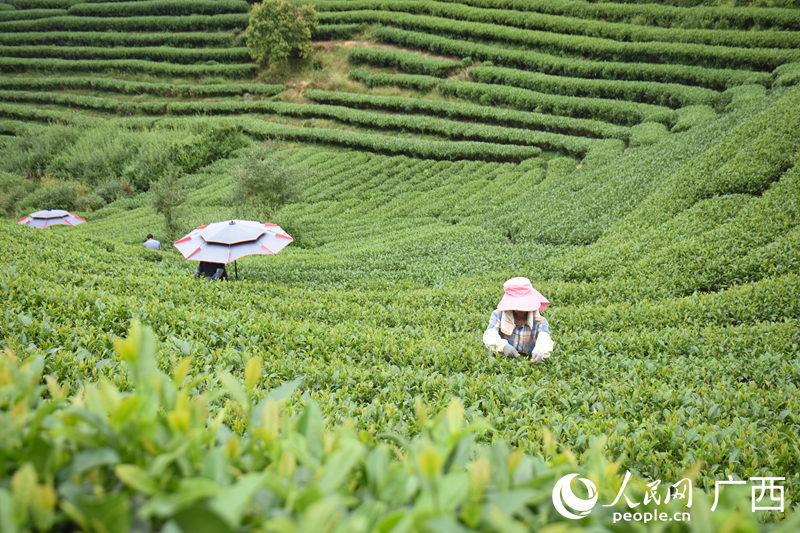 走进广西柳州市三江侗族自治县八江镇布央村仙人山茶园,绿叶苍翠欲滴,采茶人穿行于茶垄之间,指尖翻飞,不断挑采新茶。
