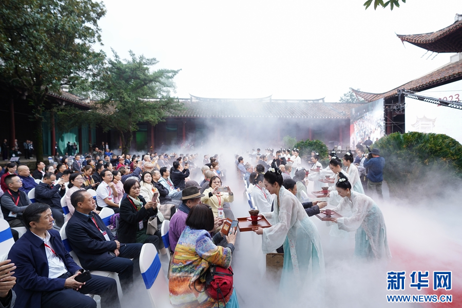 向来宾奉茶。新华网发(葛悦月 摄)