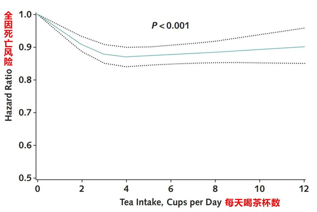 全因死亡率与每日喝茶量关系,研究截图 健康时报译