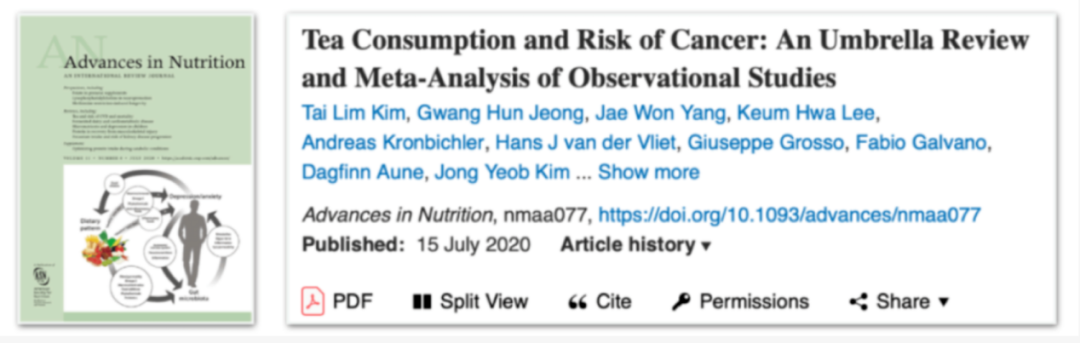 2020年发表在《营养学进展》上的一项研究发现:喝茶真的可以预防癌症,尤其是口腔癌。同时饮用各种茶与胃癌、结直肠癌、胆道癌、肝癌等多种癌症的风险降低有关。⑥