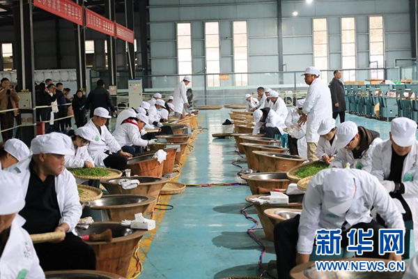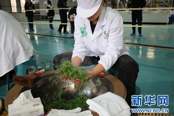 手工制茶组比赛现场。新华网发(杨野 摄)