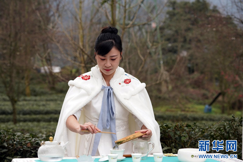 近日,乐山峨眉山市海拔1000米左右的雪芽村迎来了高山绿茶采摘季。在峨眉雪芽有机茶生产基地,人们采茶、制茶、展示茶艺,一派春意盎然的景象。(新华网黎涛摄)