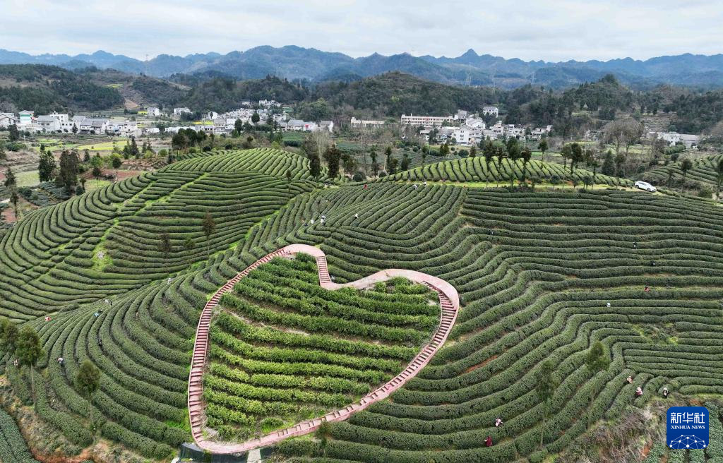 随着气温转暖,贵州省遵义市凤冈县茶园里茶树吐露新芽,各茶叶基地迎来采摘首批春茶的茶农和游客。据悉,近年来,凤冈县将茶产业与乡村旅游、休闲农业等融合发展,绿色生态旅游经济呈现勃勃生机。