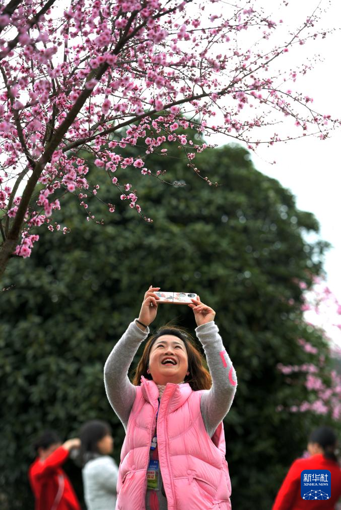 3月16日,游客在贵州省凤冈县永安镇田坝社区生态茶园基地游览拍照。新华社记者 杨楹 摄