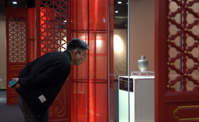 浏览整场展览,记者发现,不少清代蒙顶山贡茶文物都是明黄色木匣外壳,匣内装有银、锡等金属茶盒、茶瓶,包装风格统一鲜明。对此,万秀锋也特别解释,这就是四川蒙顶山贡茶产区的地方特色。