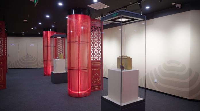 “根据清代的贡茶制度,产自蒙顶山的茶叶在当地经过粗加工包装后,就会被送往四川布政司的贡房,经过相应的验收、包装环节后,才会被快马加鞭送往京城”。万秀锋说,每个产区的贡茶都有自己的包装特色,大家在展览中看到的明黄色的木匣、明黄色封签以及木匣的外的手提等元素设计,都是四川贡茶包装的标准样式。
