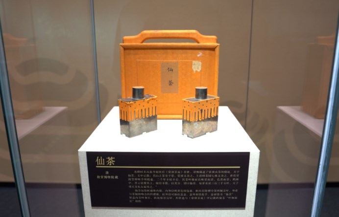“清代乾隆时期,所有贡茶中,只有四川的仙茶、陪茶、菱角湾茶、观音茶和春茗茶这五种茶品是用银瓶包装的,其中以仙茶为首。而其他绝大多数茶品,都是以锡质或铁质材料包装的。”万秀锋说,“仙茶”极其珍贵,每年进贡数量只有两瓶,主要用于作祭祀太庙,属于使用规格比较高的一种茶品。在故宫出版社出版的《故宫贡茶图典》里就写道:“仙茶作为皇家最重大之典礼郊天及祀太庙之贡品,每岁仅供三百三十五叶”。