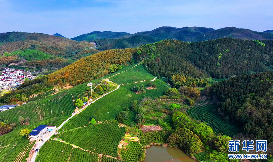 近年来,安徽省马鞍山市濮塘镇充分发挥区位优势,打造河畅、水清、岸绿、景美的生态环境,写好“茶文章”,促进乡村旅游发展。暮春时节,走进濮塘镇黄庄村,一片片茶园镶嵌在青山之间,让人心旷神怡。新华网发(濮勇 摄)