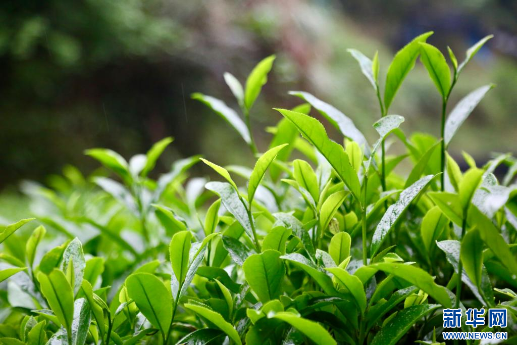 枝头抽出嫩绿的芽头和叶片,吐露出茶叶的芳香。新华网发(郑炯娜 摄)