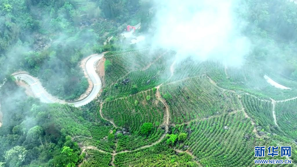 航拍潮安区登塘镇云雾缭绕的茶山一隅。新华网发(郑炯娜 摄)