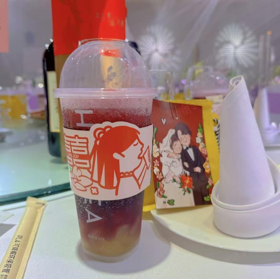 据喜茶相关负责人介绍,今年10月,广西南宁的一对90后新人希望举办一场既个性、有趣,又不失氛围的婚礼,定购了320杯新中式茶饮,以取代传统的酒水敬酒,同时还定制了婚宴包材和布置,以此搭配婚宴的整体风格。